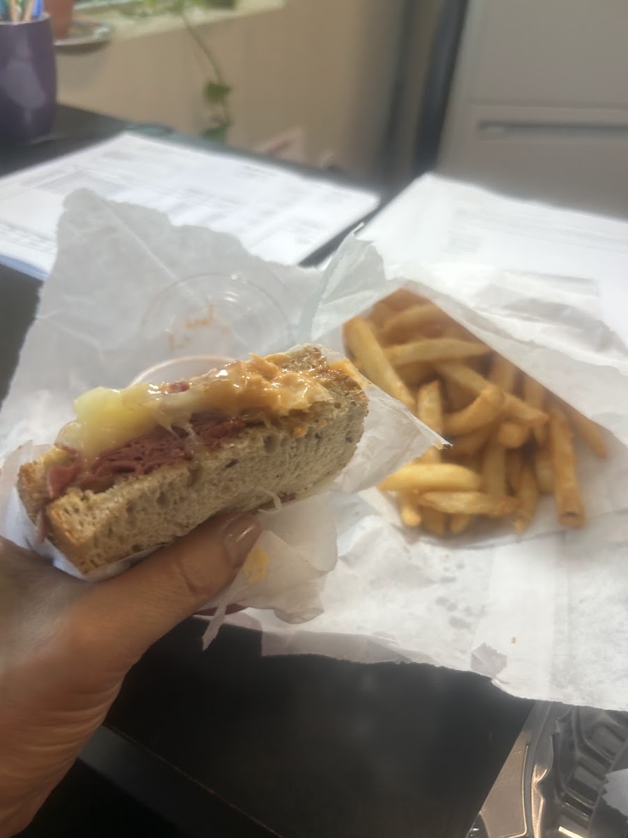 Lunch brings a wider variety of options, from stacked sandwiches to burgers and salads. The café’s sandwiches are generously filled, often served with fries or a side salad, making them a solid choice for people stopping in during a work break. A grilled chicken sandwich with melted cheese and fresh lettuce stood out for its balance of flavor and texture, while the burger menu delivers exactly what you expect from a neighborhood café: juicy patties, toasted buns, and classic toppings. The portions are noticeably generous, which explains why many reviews from locals mention leaving full and satisfied.